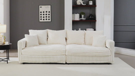Designed for everyday lounging and deep relaxation, this 104.3” CharmyDecor plush corduroy sofa delivers the soft, enveloping comfort of a cloud couch with the structure and support your home needs. Generously sized and thoughtfully cushioned, it’s perfect for family gatherings, movie nights, or stretching out after a long day.