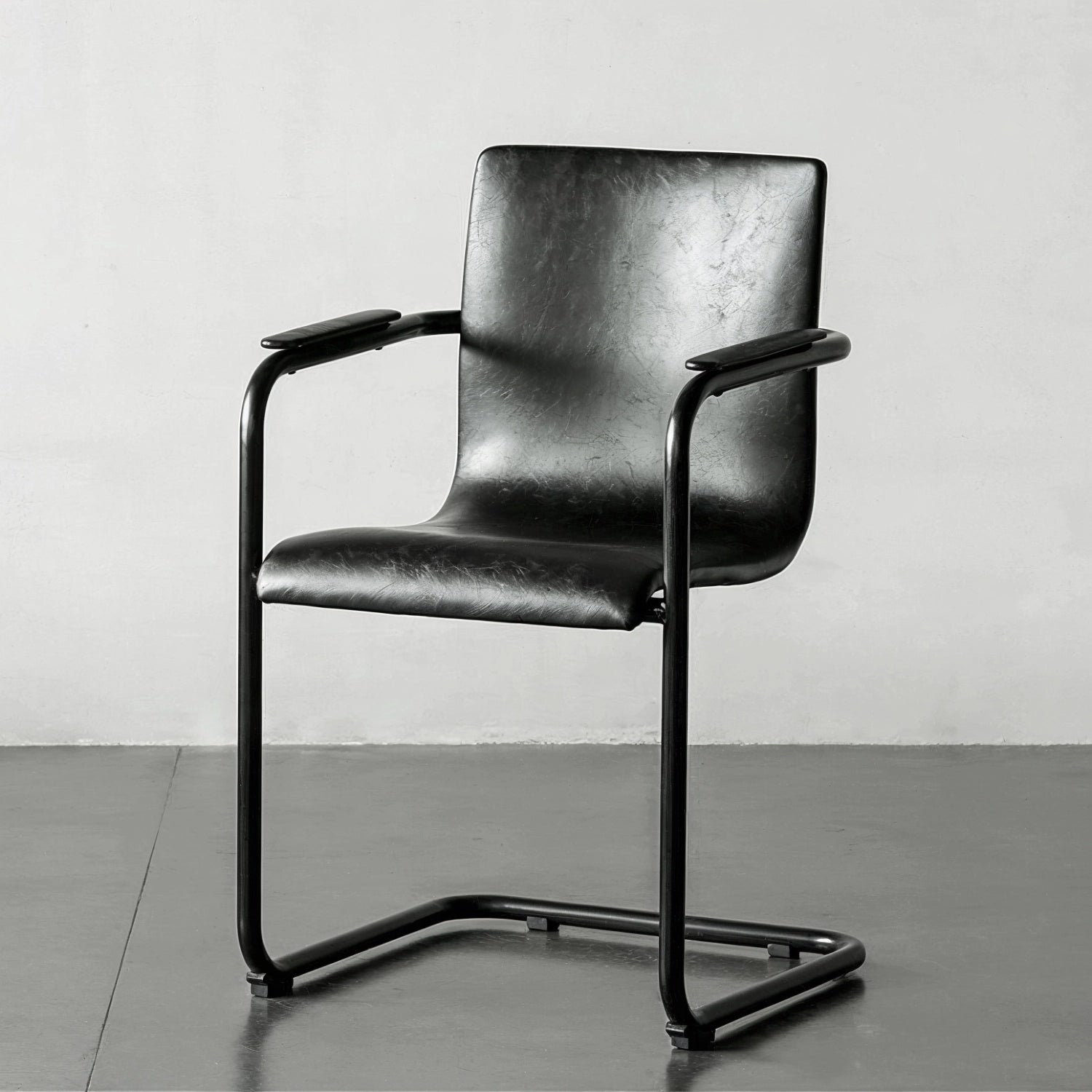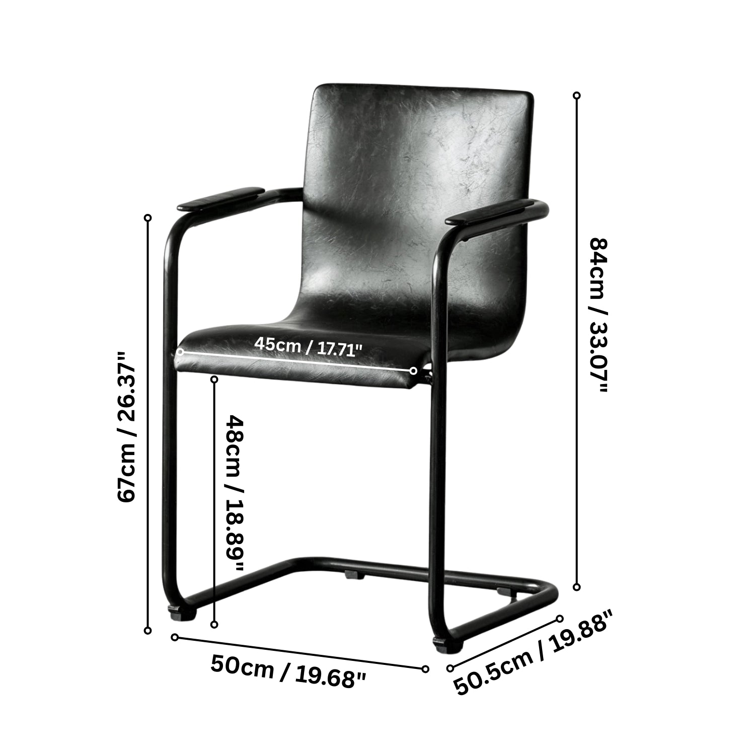 Add a sleek, industrial edge to your dining or workspace with this set of 2 modern cantilever armchairs. Designed with a minimalist silhouette, each chair features a gently curved seat and backrest upholstered in black PU leather for a smooth, leather-like finish that’s easy to clean and maintain. The sturdy tubular metal frame offers a stylish floating effect, while integrated armrests provide added comfort and support.