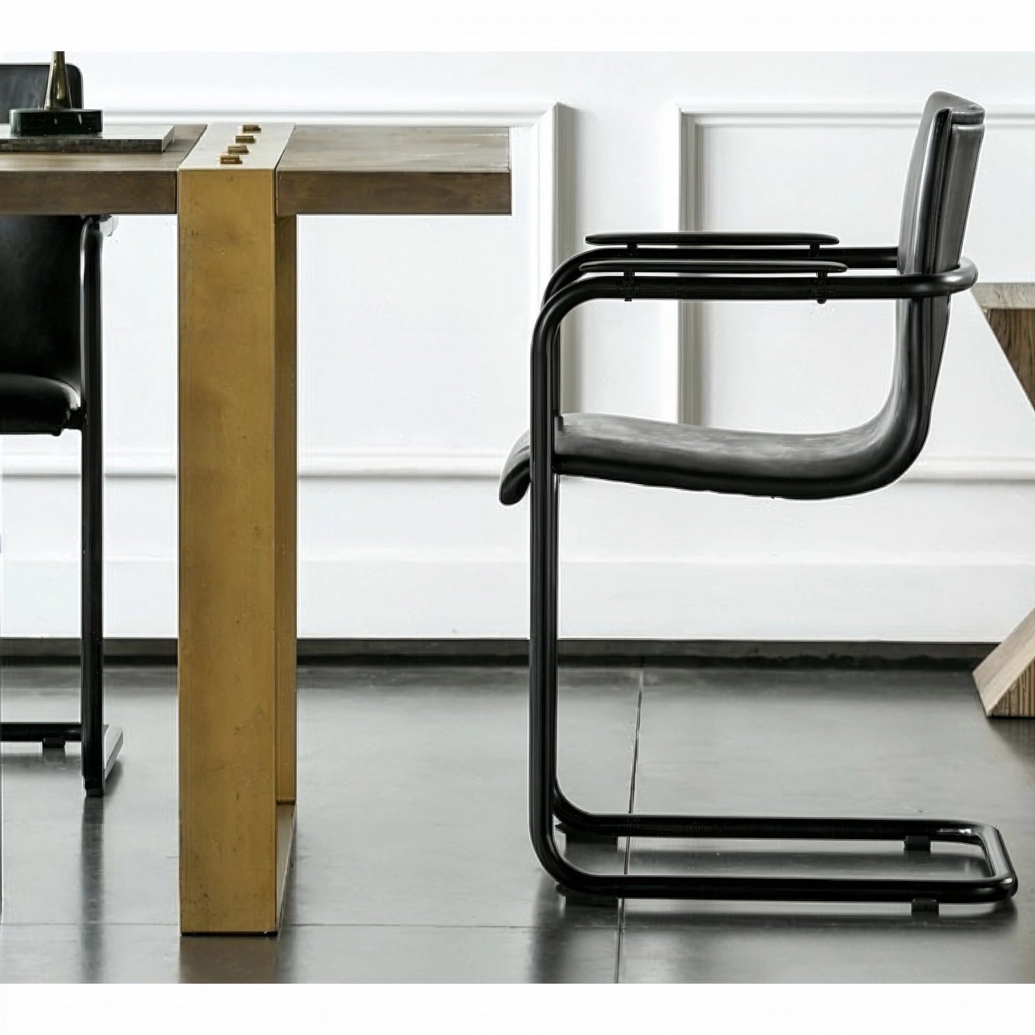 Modern Black PU Leather Cantilever Dining Armchair with Metal Frame – Set of 2
