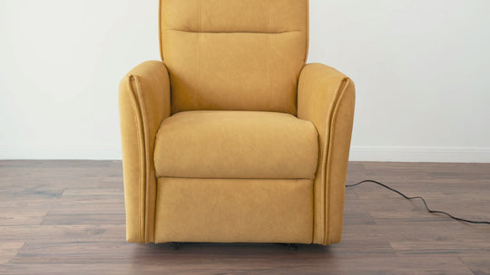 Experience pure comfort and effortless style with this dark yellow Italian suede recliner chair, designed for relaxing evenings, cozy reading moments, or afternoon lounging. The infinite position reclining mechanism lets you adjust smoothly to your ideal angle, whether you want to sit upright or stretch out fully. Upholstered in premium Italian suede, the fabric is soft to the touch, beautifully textured, and resistant to stains and water—making it a smart choice for homes with kids and pets.
